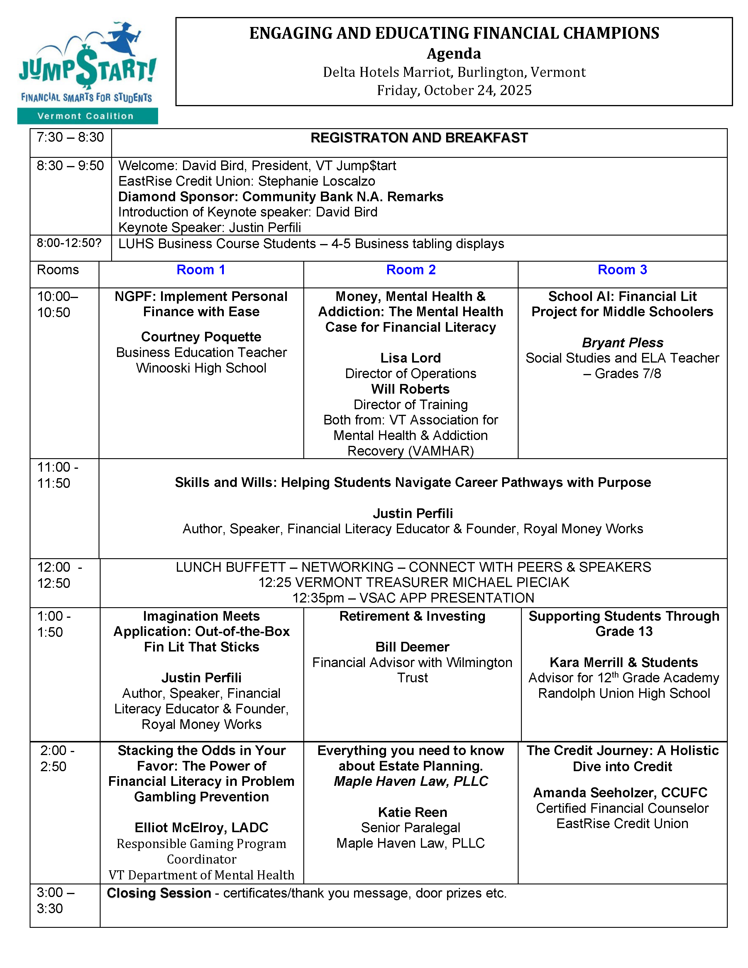 Vermont Jump$tart Coalition 17th Annual Financial Literacy Conference